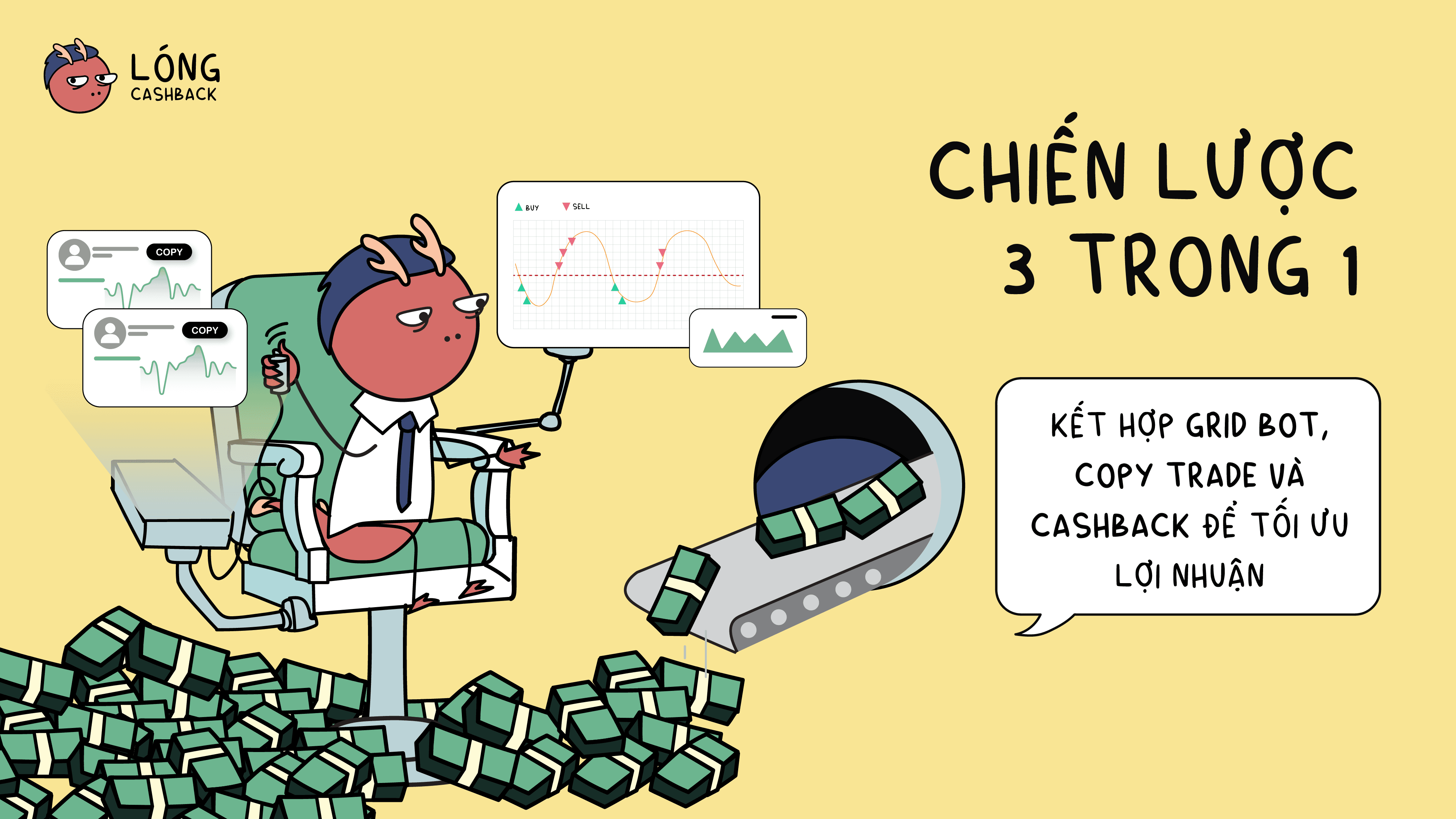 Chiến lược 3 trong 1 kết hợp Grid Bot, Copy Trade và Cashback giúp trader giảm rủi ro, tối ưu chi phí và nâng cao lợi nhuận ròng trong mọi điều kiện thị trường crypto.